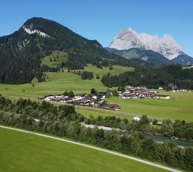 Komplett flache Strecke entlang an der Großache mit wunderschönen Blick auf das Kaisergebirge.