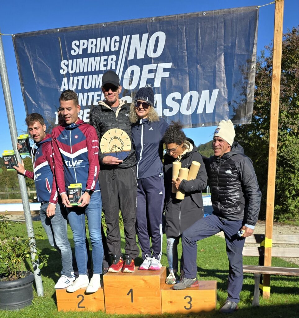 Die Sprüche von “NO OFFSEASON” fanden wir echt cool. Sie hingen zahlreich im Bereich von Start/ Ziel und haben uns sehr motiviert. Wir sagen beim Training im Winter immer schelmisch, wenn wir tief im Schnee stecken “there is NO OFFSEASON”!!! Dass Maximilian, der auch mitlief, und mit dem wir auch vorm Start oft geredet haben, hinter den Sprüchen steckte war uns nicht bewusst. Sonst hätten wir uns da schon bei ihm bedankt für diese Motivation!!!