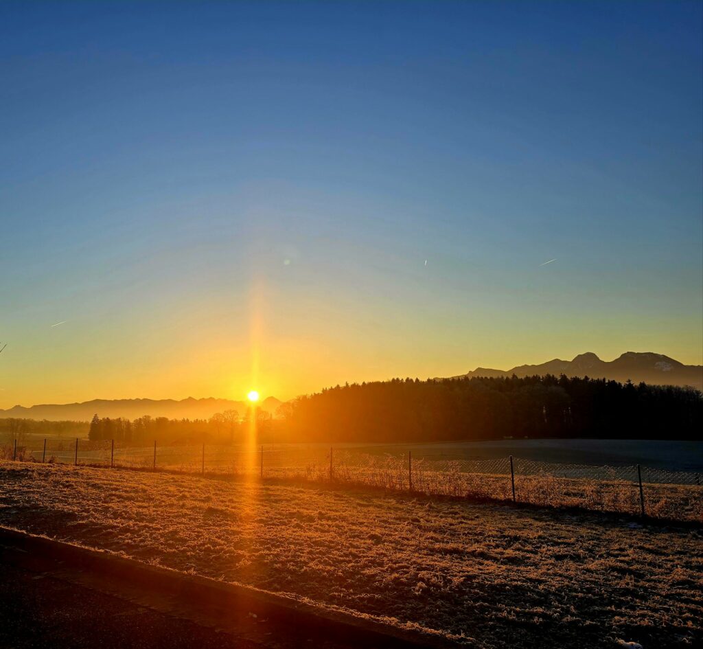Wenn morgens um 6 Uhr der Wecker klingelt und es draussen bitterkalt und dunkel ist, da fällt das Aufstehen wirklich schwer! Sobald man dann aber Richtung Berge unterwegs ist und den tollen Sonnenaufgang sieht, der die Welt in einem traumhaften Winterzauber erleuchten lässt, ist man froh dass man sich überwunden hat!