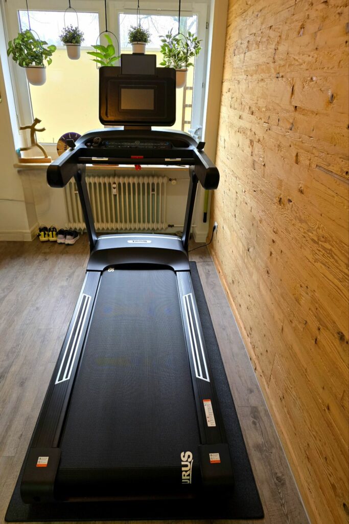 Nun aber zum Training! Zu meinem 50. Geburtstag habe ich mir ein Taurus 9.9 Laufband gegönnt, welches uns beim Training unterstützt. Hier können wir bei sehr schlechtem Wetter trainieren oder wenn ich Bereitschaftdienste habe und Jochen wenn er spät von der Arbeit kommt. Mit der Kinomap App, die ich dazu abonniert habe, können wir unser Training sehr vielseitig und interessant gestalten. So bin ich zum Beispiel neulich in den Französischen Alpen gelaufen mit ordentlich Höhenmetern, Welche dass Laufband dann automatisch dem Profil der von mir ausgesuchten Strecke bei Kinomaps anpasst. Mit 10Km/h steil bergauf, da war ich ganz gut am schnaufen 😉 … Auf dem Laufband möchte ich also auch meine Intervalltrainings zusätzlich unterstützten.