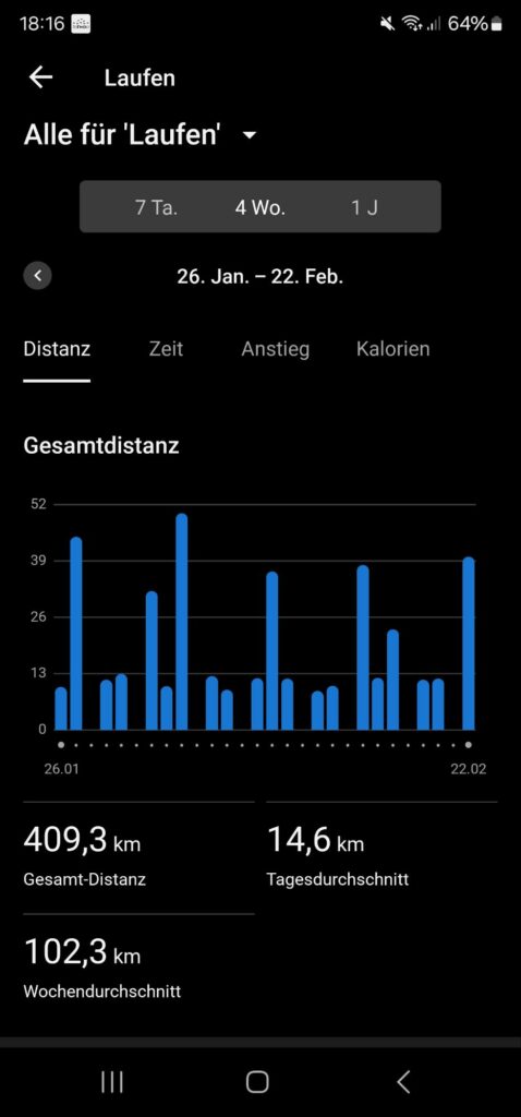 Jan und Feb sind sehr gut gelaufen, pro Monat 400km und etliche Höhenmeter sprechen für sich!