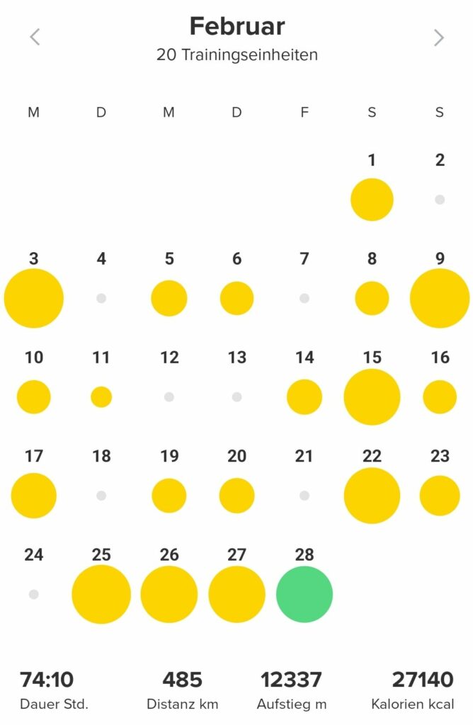 Fazit diesen Monat ist, dass ich gut dabei bin und im März das Volumen erstmal nicht erhöhen muss 👍